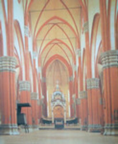 basilica内部。外から見るとあれほど地味だった大聖堂も、その内部は静謐さと美しさ、気高さに満ちている。ファサードが未完成なのと同様、内壁も未完成で、あちらこちらに白いままの壁が目立つ。というよりむしろ白い壁ばかり。もし完成していれば、壁面下…